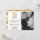Celebre el aniversario de bodas dorado con esta invitación de fiesta de aniversario de bodas de 50 años. Este diseño presenta una foto personalizable para insertar su toque especial. La parte trasera presenta una textura de oro falso en un patrón de rayas.