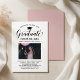 Elegante tarjeta de invitación de graduación y invitación a fiesta de graduación felicita y anuncia tu graduación con estilo! Cuenta con tapa de grado negra, "Graduado" en escritura y texto personalizado moderno que se puede personalizar con el nombre del graduado, la escuela y los detalles del fiesta. Añadir una foto favorita del gráfico. Nota: el color de acento rosa rosa polvoriento claro en la parte posterior de la tarjeta puede cambiarse a blanco u otro color que coordine con los colores de la foto o del fiesta.