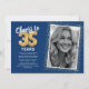 Celebre cumpliendo 35 años con estilo con nuestras sofisticadas invitaciones de fiesta de cumpleaños. Diseñadas con un elegante fondo azul, personalizables a cualquier tono de su elección, estas invitaciones presentan un glorioso acento de purpurina dorada falsa, globos de helio dorados y un espacio para una foto querida. La plantilla de texto de celebración de cumpleaños número 35 moderna es fácil de personalizar, lo que garantiza que la celebración de su cumpleaños importante comience de manera memorable.