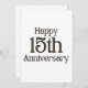 Esta invitación presenta las palabras "Feliz 15 Aniversario" en una fuente de impresión única con letras doradas y contorno negro. Impreso en un papel clásico de 17.5 pt de grosor con acabado mate sin revestimiento y textura de cáscara de huevo, fabricado e impreso en EE. UU. con 15 Años De Amor impreso en la parte posterior.