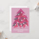 Personalizado feliz navidad y feliz año nuevo con la invitación a la tarjeta rosa. Personalizar con mensaje, nombre. Diseño moderno, rosa y de moda con un árbol de navidad colorido. Envíalo a la familia, amigos, parientes o padres. Tarjeta de bonito y de sabor con árbol de navidad.