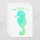 Feliz cumpleaños, la invitación al caballito de mar es cambiable con el nombre, fecha, lugar y cualquier otra información que necesites agregar. El tema del caballito de mar es divertido y se pueden añadir pegatinas para los favores de fiesta. Obra acuarela de Artist Dawn Lippert Copyright 2022 Todos los derechos reservados