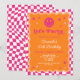 Feliz sonrisa rosa y naranja a cuadros chica invitación de cumpleaños.