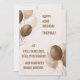 Un diseño monocromo de color marrón sobre beige con globos marrones y beige. Con agujeros ingeniosos en la parte delantera y trasera, es una gran adición a un pequeño regalo. Agregue el nombre de la persona afortunada, la nueva edad y su nombre o mensaje.