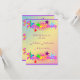 Este cartel de cumpleaños está diseñado con "Feliz Cumpleaños" en un color rosa. Se usan estrellas de color púrpura, rojo, azul y multicolor, y un sol amarillo brillante con rayos como telón de fondo. Esta es una tarjeta RSVP que coincide con la invitación Feliz Cumpleaños y Estrellas. También se añadió un fondo de color arcoiris junto con un borde morado. Se puede personalizar con toda su información.
