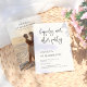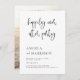 Una invitación moderna y minimalista, y una invitación a la recepción. La parte delantera de esta tarjeta muestra "felizmente siempre después del fiesta" en el guión de caligrafía de moda, con los nombres de la pareja y detalles de celebración alineados a la izquierda abajo. Una simple invitación a la boda en blanco y negro con una tipografía elegante. El reverso de las tarjetas tiene una foto de sangre completa, con los nombres de la pareja en negrita en tipografía serif y la fecha de su boda debajo. La redacción puede ser editada para una ceremonia de renovación de votos, boda secuencial, aniversario, post-salida, o fiesta de la cena. Perfecto para las parejas que se fugaron, tuvieron una pequeña ceremonia privada o micro boda, pero aún así quieren celebrar con la familia y amigos. Ver la colección enlazada en esta página para encontrar artículos coincidentes o visitar nuestra tienda para más diseños de invitación a bodas!