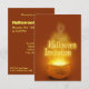 Ilustración mística de Halloween con un caldero de bruja con líquido hirviendo, chispas brillantes y tipografía de "Invitación de Halloween" que gotea en el vapor caliente.