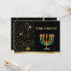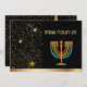 Invitación Feliz Festival de las Luces de Janucá. Hermosa Tarjeta de Invitación o Felicitación de Lujo para Fiesta Judía. Feliz Janucá - texto hebreo (letra cursiva) Fiesta Judía Janucá fondo con luces Bokeh y símbolos tradicionales de Chanucá - dreidels de madera (peonza), donas, menorá, velas, estrella de David y patrón de fondo de luces brillantes, Marco Dorado. Decoración del Festival de Janucá. Personalizado. Plantilla de Texto. Jerusalén, Israel. Invitaciones y Papelería, Tarjetas de Felicitación, Invitaciones y Anuncios Fiesta y Temporada.