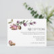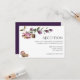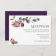 Bonito, elegante, moda y modernas tarjetas de recepción para bodas para su ocasión especial. Flores de magnolia violeta color agua en hojas blandas y verdes, con macarons dulces de bonito que enmarcan los detalles de la tarjeta de la boda, reserve la tarjeta para revelar un rico fondo de color morado. Personalice los detalles de la recepción de su boda, incluyendo el momento, el lugar y cualquier otro detalle adicional como aparcamiento o transporte. Diseñado para coordinar con nuestros Macarons Felices | boda Floral violeta y colección de invitaciones a eventos.