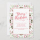 Este diseño presenta una alegre invitación navideña fiesta singulares a una fiesta atractiva con un diseño elegante de diseño minimalista tipo de letra de caligrafía, letras de tipografía rojas y verdes, hojas de follaje verde de pinecones, bayas de bayas botánicas simples, un sencillo diseño minimalista, creativo y único, elegante elegancia creativa, elegante diversión, filigre elegante clásico swirly, lindo fiesta de vacaciones simple