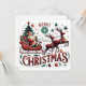 Difunde la alegría clásica de las fiestas con este encantador diseño de "Feliz Navidad". Cuenta con un jovial Santa Claus en su hermoso trineo ornamentado, tirado por dos magníficos renos en pleno vuelo. La escena está adornada con elementos tradicionales de Navidad como un árbol decorado, adornos festivos, copos de nieve y acebo. El estilo inspirado en la vintage y la paleta de colores cálidos capturan la magia atemporal de la temporada. Perfecto para tarjetas, ropa, decoración del hogar y regalos para hacer que cualquier celebración navideña sea especial.