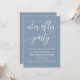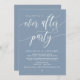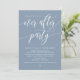Marque el comienzo de su eternidad con elegancia usando nuestra polvorienta tarjeta de invitación a la celebración del boda con temática azul, "Feliz eterno después del Fiesta". Perfecto para las parejas que ofrecen su alegre ocasión, esta invitación exuda sofisticación con un toque de alegría, creando el escenario para una cena memorable / almuerzo / brunch. Adornado con un tema de diseño de guiones modernos y atemporales, le da un toque de encanto refinado a sus festividades. Diseñada por TeeshaDerrick, esta invitación promete capturar maravillosamente tu historia de amor.