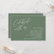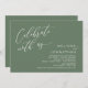 Anuncie elegantemente su feliz eterno después con nuestra moderna tarjeta de invitación a la celebración de brunch con temática verde boda, "Celebre con nosotros". Adaptada para parejas que continúan con su historia de amor, esta invitación logra un perfecto equilibrio de sofisticación y encanto, y establece el escenario para un evento inolvidable. Con un moderno diseño de escritura contemporánea, le da un toque de gracia eternidad a su día especial. Diseñada por el talentoso Teesha Derrick, esta invitación es una expresión elegante de tu amor perdurable.