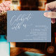 Anuncie elegantemente su feliz eterno después con nuestra moderna y polvorienta tarjeta de invitación a la celebración del brunch del boda con temática azul, "Celebra con nosotros". Adaptada para parejas que continúan con su historia de amor, esta invitación logra un perfecto equilibrio de sofisticación y encanto, y establece el escenario para un evento inolvidable. Con un moderno diseño de escritura contemporánea, le da un toque de gracia eternidad a su día especial. Diseñada por el talentoso Teesha Derrick, esta invitación es una expresión elegante de tu amor perdurable.