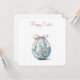 Un huevo de Pascua bellamente decorado con un patrón floral en tonos pastel azul y rosa, coronado con un encantador lazo. El vibrante diseño captura la festividad de la temporada con elegancia y encanto. Perfecto para enviar cálidos deseos a familiares, amigos y seres queridos. Comparte la alegría de la Pascua con una tarjeta que refleje tu estilo individual y calidez. ¡Haz que esta Pascua sea extra especial!