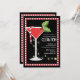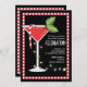 Un cóctel rojo festivo es cubierto hacia fuera con un acebo de la diversión adorna, y un bastón de caramelo rayado rojo y blanco festivo, mientras que está envuelto en pocas luces del día de fiesta. ¡Un gran diseño para la familia y los amigos de invitación a su celebración del navidad!