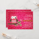 Búho lindo que se sienta en una rama del árbol. Estampado de flores rosado brillante lindo en el fondo. Algunos elementos por la cereza Clipart.