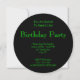 Luminosos bucles verdes, rosados y acuáticos y rayas de arte fractal en negro con información básica de invitación de cumpleaños. Me recordó un poco a las luces de carnaval eléctricas. Puede cambiar el estilo de letra, el tamaño y los colores de la parte posterior según sea necesario.