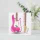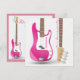 Cool y femenino, convida a tus amigas a tu despedida de soltera o fiesta de baile con este diseño chic de guitarra eléctrica rosa. La parte delantera tiene un fondo a rayas blancas y grises claras, mientras que la parte trasera tiene un marco a rayas rosas. Personaliza con tu propio texto. Hace una invitación maravillosa para tu fiesta de chicas, o como tarjeta para la chica rockera en tu vida.