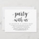 Tarjeta de invitación de boda de fuga con tema de escritura moderna (Festeja con nosotros). Es perfecta para su boda de fuga, cena de boda informal junto al lago, baile y fiesta.