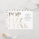 Esta moderna invitación para la fiesta de Nochevieja presenta un patrón de confeti brillante en la parte posterior y la frase "Pop fizz clink" en lámina dorada falsa brillante en la parte delantera. También funcionaría muy bien para una celebración navideña o despedida de soltera.