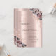Una invitación moderna, chic y glamurosa con gotas de brillo y flores sobre un fondo de rosa dorado.