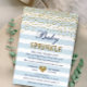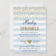 Invitación de festejo de niño pequeño azul claro y dorado con rayas azules y blancas y acentos de brillo. El color de fondo azul se puede cambiar o eliminar. Hecho para combinar con mi Colección Azul Claro y Dorado. Si tiene alguna pregunta o solicitud personalizada, no dude en hacérmelo saber.