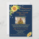 Una bella y elegante personalizado Celebración de la invitación a la vida con girasoles acuarelas florales y una cadena de luces con texto crema y naranja sobre un fondo azul. Una manera encantadora de invitar a tus amigos y familiares a compartir sus historias favoritas y recuerdos de tu ser querido. Personalizar añadiendo una fotografía. Luego personaliza con tu propio mensaje y detalles del funeral .