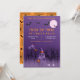 Esta invitación a la fiesta de Fantasma Fantasma Trick o Treat Halloween incluye dos fantasmas adorables con gorras brujos y cubos de Trick o Treat, dos rostros espeluznantes de jack o'lanterns, una luna llena, una valla antigua y murciélagos. La parte posterior de la invitación presenta un divertido patrón espeluznante con telarañas, calabazas, cráneos, murciélagos y más (¡puedes personalizar del color de fondo!). Este diseño es perfecto para una fiesta de Halloween. Este diseño se adapta a cualquier género o edad. Puede personalizar de todos los detalles de su evento. Ver toda la colección coincidente!