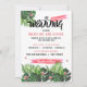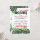 Tema del Festival Invitación a la boda. Con follaje verde con hojas de Monsteria y flores rosas. Un tema moderno del festival que invita a su invitado a su boda. Toda la información se adapta fácilmente a su información. Nombres y fechas Parte de una suite boda de papel.
