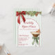 Festive Gingerbread Martini Holiday Open House Invitation – A festive classic with a modern twist! This elegant holiday open house invitation features a charming watercolor illustration of an espresso martini topped with a playful gingerbread man, surrounded by a delicate garland and coquette-inspired red velvet bow. The soft sage green striped background and trendy arch design add a touch of sophistication and warmth.
