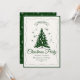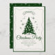 A charming, vintage-inspired design featuring a stylized Green Christmas tree adorned with ornaments and candles, set against a crisp white background. The whimsical wavy border and "JOIN US FOR A" banner provide an elegant starting point for any holiday party, dinner, or event invitation.