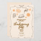 Reúnase con estilo con este elegante diseño de la Festividad de Acción de Gracias. Con un ilustracion de pavo dibujado a mano enmarcado con un borde de cinta sobre un fondo cálido a rayas, esta invitación es perfecta para acoger una cena festiva de vacaciones. Fácilmente personaliza con tus detalles del evento, fecha y RSVP para una manera cuidadosa de invitar a familia y amigos a tu celebración del Día de Acción de Gracias. Una encantadora elección para comidas de vacaciones, reuniones de otoño y fiestas de temporada.