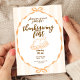 Reúnase con estilo con este elegante diseño de la Festividad de Acción de Gracias. Con un ilustracion de pavo dibujado a mano enmarcado con un borde de cinta sobre un fondo cálido a rayas, esta invitación es perfecta para acoger una cena festiva de vacaciones. Fácilmente personaliza con tus detalles del evento, fecha y RSVP para una manera cuidadosa de invitar a familia y amigos a tu celebración del Día de Acción de Gracias. Una encantadora elección para comidas de vacaciones, reuniones de otoño y fiestas de temporada.