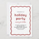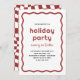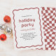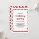 Esta invitación a fiesta de Navidades incluye un borde blanco ondulado y ondulado. "Fiesta de vacaciones" está escrito en una tipografía lúdica, con su nombre debajo en un guión lindo. La parte trasera muestra un divertido y retro patrón ondulado a cuadros. Perfecto para compartir la alegría de las vacaciones en un fiesta con amigos y familia, estas invitaciones mezclan estilo audaz y detalles modernos para hacer que su invitación destaque. Disponible también como descarga digital. Consulta la colección para ver los artículos que coincidan o visita nuestra tienda para ver diseños más exclusivos de invitaciones para fiestas de Navidades.
