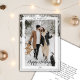 Un diseño de navidades sencillo, minimalista y contemporáneo que destaca en esta temporada de vacaciones. Esta tarjeta de Navidades muestra una plantilla de fotos en la parte delantera y una superposición de marco blanco. El elegante guión negro "Happy Holidays" también está al frente junto con el nombre de la familia. La parte posterior de la tarjeta permite un mensaje personal de vacaciones junto con todos los nombres de los miembros de la familia, si así lo desea. Disfrute de las vacaciones de invierno con esta sofisticada elección para enviar a familia y amigos para Navidades y Año Nuevo.