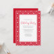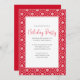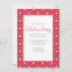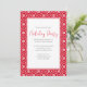 Este diseño presenta una fiesta de Navidades copos de nieve simple, rústica casa de campo con invitación blanca y roja con una minimalista nieve mínima de copos de nieve, patrones azul y blanco, una reunión de vacaciones de Navidades, letra moderna de guión de caligrafía, un moderno estilo de texto de tipografía, elegante celebración simplista del país, invitaciones para fiestas navideñas de Navidades, simples y limpias vacaciones básicas