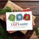 Este diseño presenta una invitación a la fiesta de los Navidades, con un suéter divertido y feo, un diseño de acuarela adorable, un estilo festivo único con un verde rojo, y una tipografía moderna azul, azul, fiesta de vacaciones, fiestas clásicos, caprichosos, muy buenos para los fiestas de negocios o corporativos también,