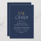 Esta moderna invitación a la fiesta de graduación de yay grado de la marina fete es perfecta para un simple fiesta de postgrado. El diseño presenta una elegante tipografía boho con un toque sofisticado en un elegante azul marino y dorado amarillo.
