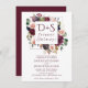 Moderno marco floral cuadrado de acuarela pintado a mano, oscuro y húmedo, con las iniciales monográficas de la pareja para un moderno estilo romántico con flores de borgoña, marsala y rojos de vino con peonías de rosa de durazno y rosa y melocotón adornadas con eucalipto botánico y acentos profundos en tonos verde oliva y violeta violeta. De la colección "Moody Fig Blossoms" se desprende esta magnífica disposición de higo y flor silvestre de inspiración bohemia, adornados con iniciales de escritura moderna y flores violetas, rosadas y verdes radiantes y follaje de eucalipto. Para personalizaciones u otros colores, por favor visite la tienda o contacte con el diseñador, Fharryn, c/o JustFharryn@yahoo.com #bohochic #zazzlemade