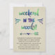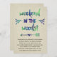 Esta encantadora invitación de moda rústica para una fiesta "glamurosa" de soltera en una cabaña presenta una caligrafía con un guion de pincel de bonito que dice "¡Fin de semana en el bosque!" con un efecto color de agua verde, azul y violeta. El diseño también incluye un corazón y una flecha, florecientes bonitos y un fondo de textura de madera.