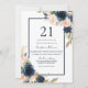 Invitación a la fiesta de cumpleaños 21ª floral de Navy y Rubor Floral Elegant Ver colección coincidente en Nicho y tienda