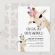 Esta tierna tarjeta de invitación para "llamar a todos los animales fiestas" de primer cumpleaños incluye una jirafa de mamá y una jirafa de bebé con gorras fiestas en acuarela. El reverso presenta un fondo de girafa gris claro. Personalízalo para tus necesidades. Puedes encontrar productos coincidentes en mi tienda.