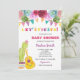 Acelere su celebración con esta vibrante Invitación de Baby Shower Fiesta. Esta plantilla de bonito diseño cuenta con encantadores cactus alegres adornados con flores rosadas, ukulele amarillo brillante, flores de colores y una clásica pancarta de fiesta que crea el ambiente de alegría y celebración. Perfecto para una reunión divertida y festiva con un toque de boho mexicano, esta invitación es ideal para honrar a la futura mamá con una ducha llena de amor, risas y estilo animado. BBS205