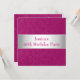 Todos los acontecimientos, celebraciones, invitaciones e invitaciones de la fiesta de cumpleaños. Conveniente para todos los cumpleaños y acontecimientos de la edad. RSVP está disponible a petición en estilo similar. Fondo rosado metalizado grabado en relieve elegante hermoso del modelo de Paisley con los bajos de satén blancos de plata y el texto blanco. Cambie el estilo y el tamaño del texto con modifica para requisitos particulares.