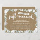 Esta bonita invitación para la fiesta del vigésimo aniversario de boda presenta una encantadora caligrafía, hermosas flores azules y blancas, un diseño de tipografía que dice "Acaban de casarse (¡hace veinte años!)", y un fondo de papel kraft impreso. Puede personalizar fácilmente esta elegante invitación del vigésimo aniversario con los detalles de su fiesta.