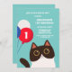 Invitación Fiesta Catástico de Gato Guay Balón Niños Cumpleañ