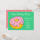 Un diseño moderno y bonito para un chica o para un chica fiesta de una casa de cumpleaños con un adorable tema de donut rosado. Este diseño es caprichoso, bonito y puede ser totalmente personalizado para incluir sus propios detalles personales.