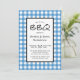 Invite a tus invitados a tu fiesta de picnic BBQ en el patio trasero con esta invitación clásica que presenta un patrón de cuadros azul y blanco con texto negro en un estilo de letra informal.