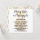 Fiesta como una piña tropical de destino para la ducha de novia. Esta es una invitación perfecta para una ducha de novia con tema de piña. La piña es un falso Relieve metalizado dorado y fondo blanco con escritura de texto con letras a mano en la parte superior. El texto se puede personalizar con su información.